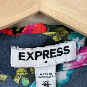 Express Womens XS Floral Button Up Blouse Roll Tab Sleeve Top