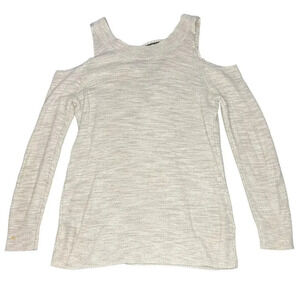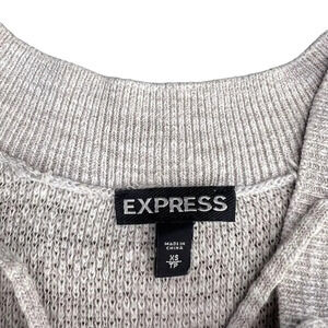 Keywords: Express, XS, pullover, sweater, gray, women's clothing, cold shoulder, V-neck, long sleeve, casual wear, lightweight knit, solid pattern, pre-owned, everyday wear, regular size.