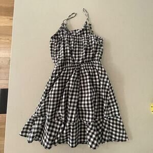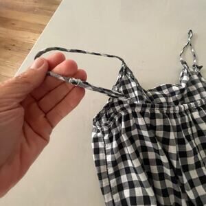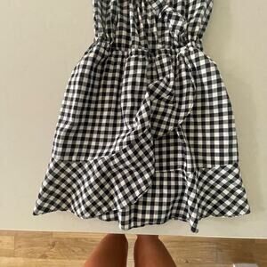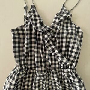Express Women's XS Mini Dress Faux Wrap Black White Gingham Straps V-Neck Ruffle