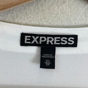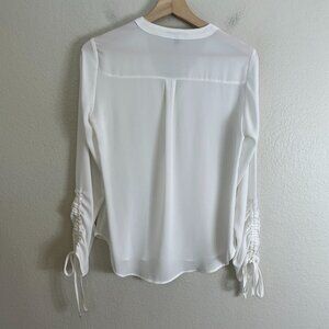 Express Womens XS White V Neck Blouse Zipper Detail Ruched Sleeves Shirt Top