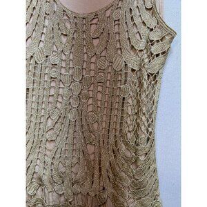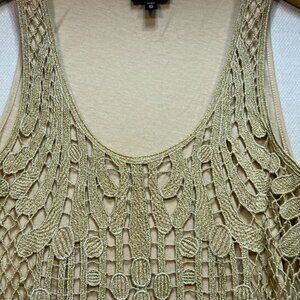 Express Women's Y2K Metallic Crochet Tank Top Sleeveless Stretch Size XS Gold