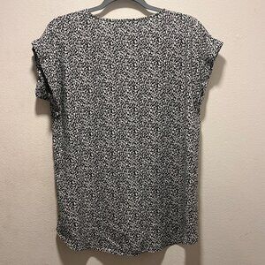 The Express Women's Y2K Polka Dot Top in Size Large features a sweetheart V-neckline and a pullover closure, making it perfect for various occasions such as travel, parties, casual wear, workwear, and business meetings. Made of rayon fabric with a touch of polyester and spandex, the top offers a feminine style with a polka dot pattern in a classic black color. This versatile shirt has a regular fit, short sleeves, and a length of 28 inches and armpit to armpit of 20 inches, making it a stylish and comfortable choice for all seasons.