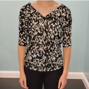 Express Women's black and white patterned v neck 3/4 sleeve top size XS