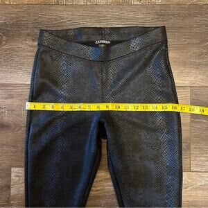 Women’s leggings, black, size small regular, spandex pants by Express. 67% rayon, 30% nylon, 3% spandex. Has an attractive snake skin pattern and the fabric is soft and warm, perfect for the upcoming cold season. Thank you for visiting!