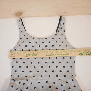 Express Women's size S Sleeveless Cropped Peplum Top Gray Polka Dot Zip