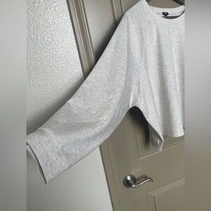 Express Lounge sweatshirt • Size: XXL • Color: Beige • Oversized fit • Material: 66% Polyester 29% Rayon 5% Spandex • Cooling, soft lightweight material • Perfect for lounging/sleep • Approx. measurements: Pit to pit: 28.5” Length: 23” Sleeves: 21” • Condition: Excellent Preowned, like new