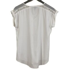Express Women's White V-Neck Short Sleeve Blouse Lace Detail Size Small NWOT