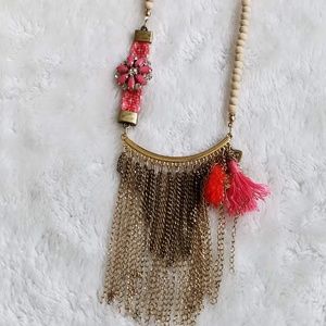 Never worn! Very cute and unique necklace from Express. Has a lot of fun details. Yellow gold, hot pink, and light-colored wood. Perfect for work or a night out. Smoke free and immaculate home. Bundle to save! Don't hesitate to reach out if you have any questions!