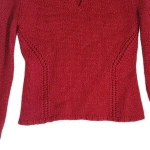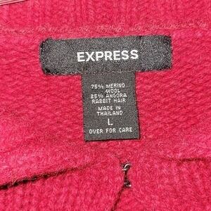 Keywords: Express sweater, wool sweater, angora sweater, keyhole sweater, ribbed sweater, long sleeve sweater, red sweater, womens sweater, designer sweater, wool blend sweater, collared sweater, fitted sweater