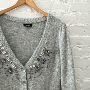 Express Wool Blend Bling Button Up Cardigan Sweater Sz Large Light Gray Sparkle