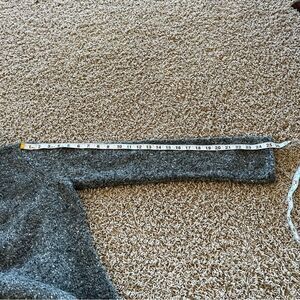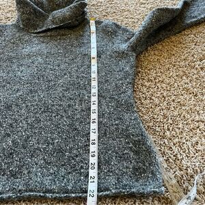 Beautiful wool blend cowl sweater with small bell sleeves. Marled black, grey and white yarn.