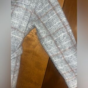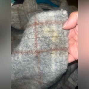 Has been worn but in overall good condition. Originally paid $298 but only asking for $30 because it does have a small stain on the bottom right side (pictured). It’s not obvious and can be dry cleaned or washed. The belt loop on the right side is also ripped, but that is a very easy fix. It had plenty of love left to give!