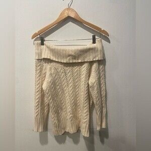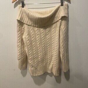 Express Wool Cashmere Angora Off Shoulder 3/4 Sleeve Cable Knit Sweater Large