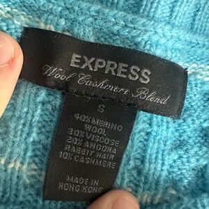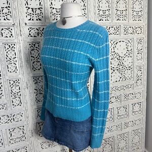 Express Wool Cashmere Blend Blue & White Striped Cable Knit Crew Neck Sweater Sz Small