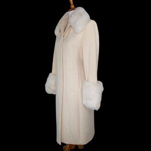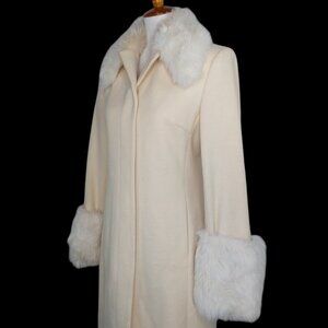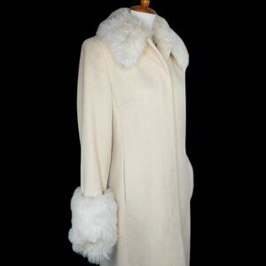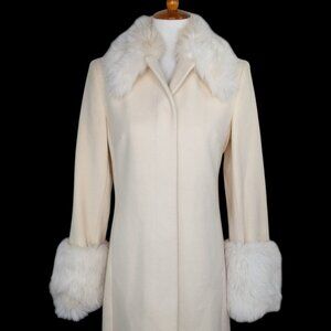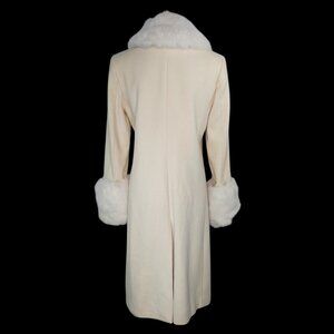 Express Wool Coat Size 5/6 Ivory Faux Fur Collar Cuffs Dressy Penny Lane Vintage