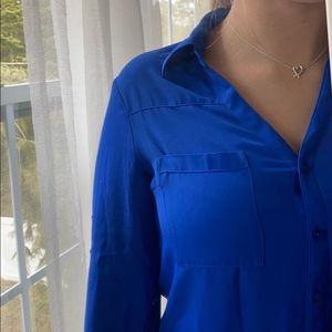 Electric blue button-up blouse