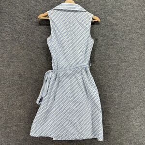 Express Wrap Dress Women 5/6 Blue Striped Midi Collared Belted Tie Up Sleeveless