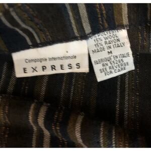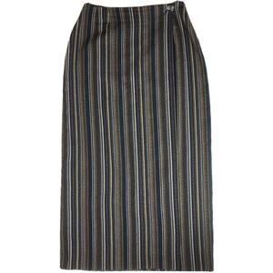 Express International Long Wrap Skirt M Olive/navy Stripe 26”waist Wool Italy.