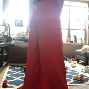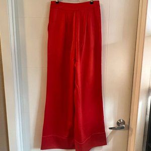 Brand new, with tags and extra buttons size 0 LadyGang High Waisted Satin Wide Leg Pant from the 2020 Express x LadyGang Collection. Color is Tomato Red. MSRP $69.90