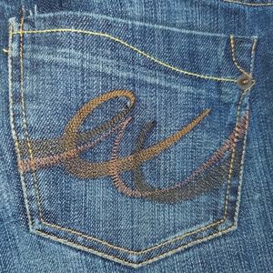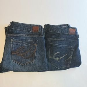 X2 jeans. Both are a size 8s. Both include normal wear mostly in the inner thigh area, pictured above
