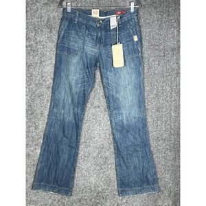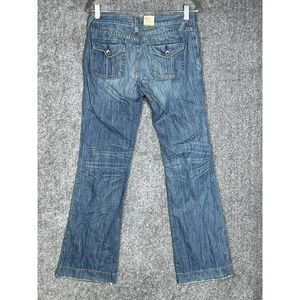 Express X2 Slim Fit W11 Flare Leg Jeans Womens Size 6 Blue Denim Patch Pocket