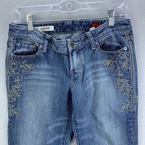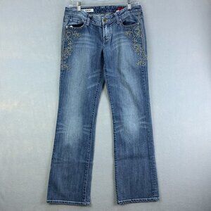 Express X2 Womens Jeans 8 30 x 31.5 Low Rise Bootcut Embroidered Slim W10
