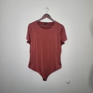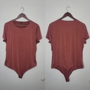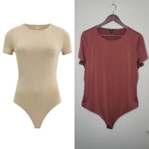 Express XL Brown Body Contour Compression Crew Neck Short Sleeve Bodysuit