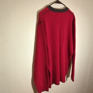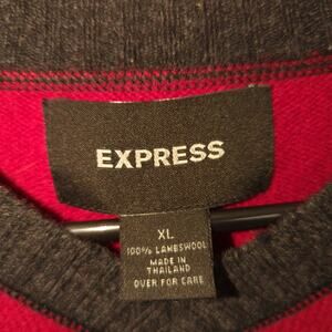 Express XL Lambswool Sweater Red Black V Neck Pullover Ribbed Trim Thailand