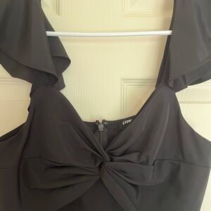 Express XS Black Ruffle Blouse with Front Knot Detail