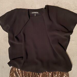 Express, XS Gold Sequin Colorblock mini dress, with Black top. A stunning mini dress comfort and style.