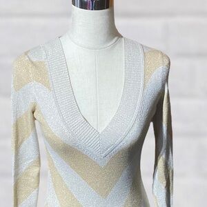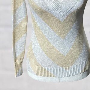 Express XS Gold Sparkle Two Tone Chevron Sweater