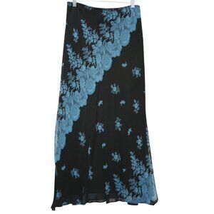 Express Y2K 100% Silk Maxi Skirt Womens M Black Floral Lace Print Fairy Grunge