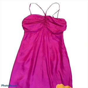 Express Y2K 90’ 100% Silk Pink Maxi Dress w/ flower detail