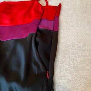 NWOT Express Y2K Colorblock Satin-Like Slip Dress in black purple and red color.