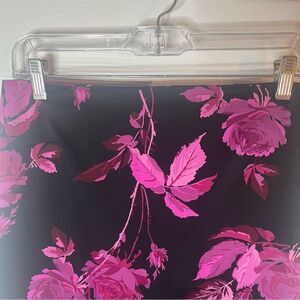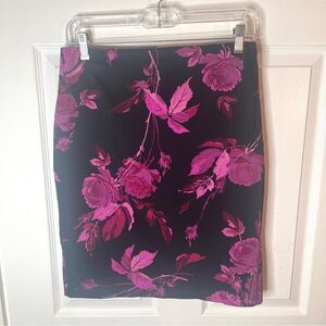 Express Y2K Floral Mini Pencil Skirt Black Pink Size 5/6 Juniors. Mini pencil skirt from Express features bold black base adorned with vibrant pink floral patterns, perfect for a night out. Mini length pencil silhouette. Wore this in 2000 during my wedding activities. Bought in the Fall of 2000.