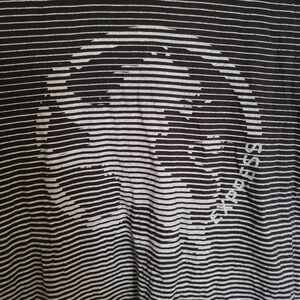 Express Lion Graphic T-Shirt Black Gray Stripe XS