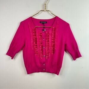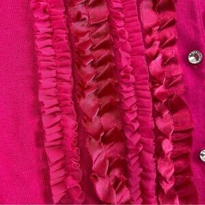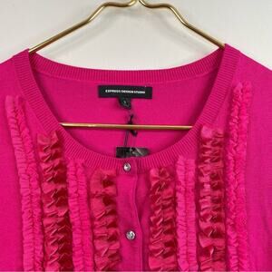 Express Y2K Pink fuchsia tiny fit Ribbon Tulle Rhinestone Cardigan Sweater S new