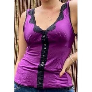Express y2k satin lace tank top lace trim underbust, button detailing and gorgeous bust, stretchy. great condition with no flaws tagged a size Medium #whimsygoth #fairycore #fairygrunge #y2ktop