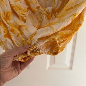 Express Yellow Floral Linen-Blend Tie Front Crop Top Size S