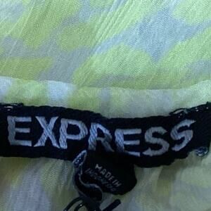 Express Yellow White Animal Print Side Tie 3/4 Sleeve Semi Sheer Blouse Top Sz M
