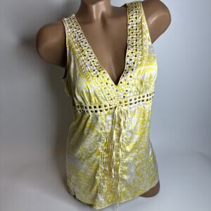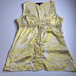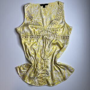 Express Yellow White Silk Cami Top Embellished Sparkle Medium Y2K Clubwear