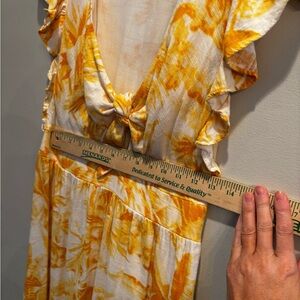 Express Yellow and White Sleeveless Ruffled Maxi Dress floral vacation whimsical