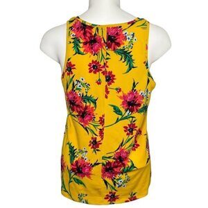 Express Yellow Pink Floral Sleeveless V Neck Stretch Top sz XS