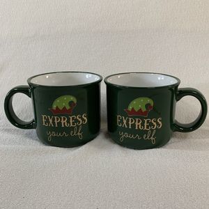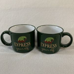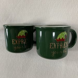 Express Your Elf Mug Green Ceramic Coffee Tea Cocoa Large 2 Pc Set Santa Helper