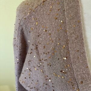 Elevate your style with this elegant beige cardigan, featuring shimmering sequin details. Perfect for adding a touch of glamour to any outfit.