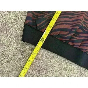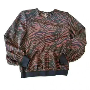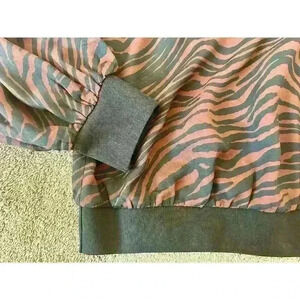 Great condition Express zebra stripe shirt. Long sleeve. Rust & black colors. Size medium. Elastic waist and wrists. Clasp closure on back. Shoulder pads.