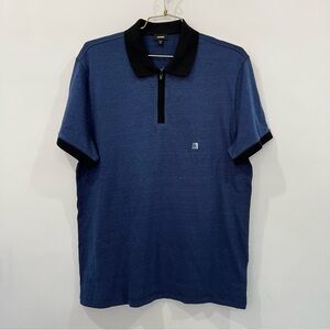 Express Zip Polo Navy and Black Shirt Textured Short Sleeve