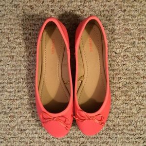 Express ballet flats. Size 6. Hot coral/bright pink color. Never worn! Looks cute with jeans, summer dresses, and a tan :)