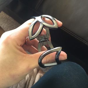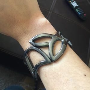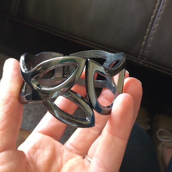 Express bracelet in a Gunmetal. It is in great condition. Opens and shuts for easy wear.
