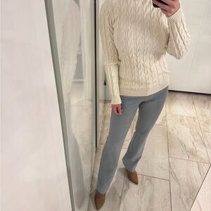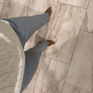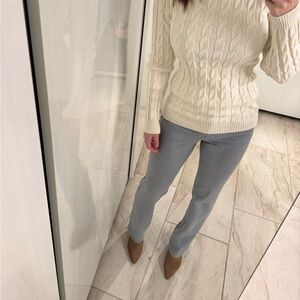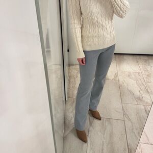 Express barely boot pant in a beautiful powder blue color. Zip and double hook closure. 14.5” across top of waist, 8” rise, 32” inseam. Poly rayon spandex.